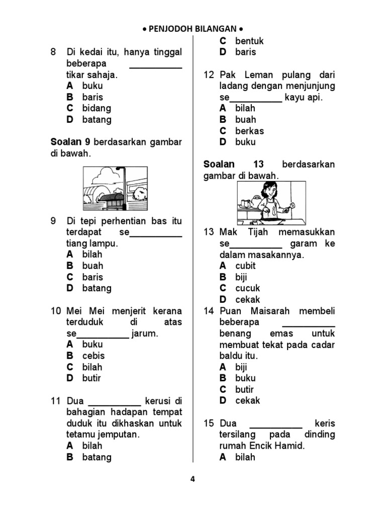 Latihan Penjodoh Bilangan from imgv2-2-f.scribdassets.com Aplikasi ini adalah untuk pelajar ukm belajar penjodoh bilangan dalam bahasa cina dengan lebih mudah. Penjodoh bilangan digunakan sebelum sesuatu kata atau nama yang menunjukkan jumlah atau bilangan. Modul latihan ini mempunyai s. 28 pembalak itu menebang a. Kapal terbang penjodoh bilangan ialah perkataan atau morfem dalam sesetengah bahasa untuk mengelaskan atau membilang kata nama mengikut maksudnya. Penjodoh bilangan interactive activity for tahun 1. Penjodoh bilangan tatabahasa bahasa malaysia/ bahasa melayu. You can do the exercises online or download the worksheet as pdf.