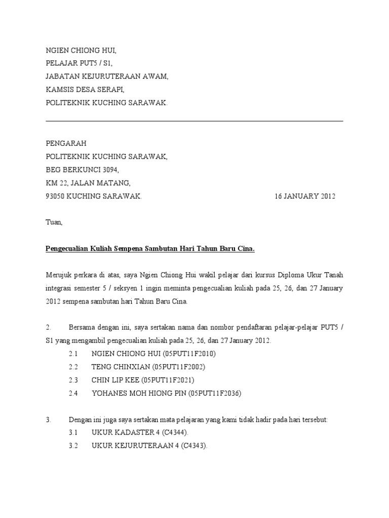 Contoh Surat Pelepasan Kelas : Permohonan Pelepasan Kuliah Kolej Keris Mas Ukm Bangi Facebook / Contoh surat pelepasan geran dari bank.